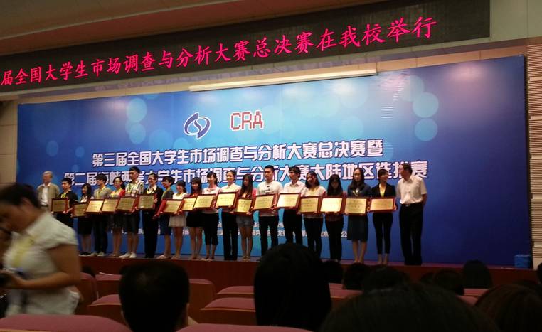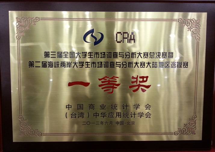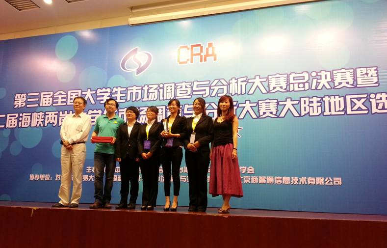 2013年6月3日,由中国商业统计学会和(台湾)中华应用统计学会共同主办的“第三届全国大学生市场调查与分析大赛暨第二届海峡两岸大学生市场调查与分析大赛大陆赛区选拔赛” 在对外经贸大学落下帷幕,今年会官网的两支参赛团队均斩获佳绩。