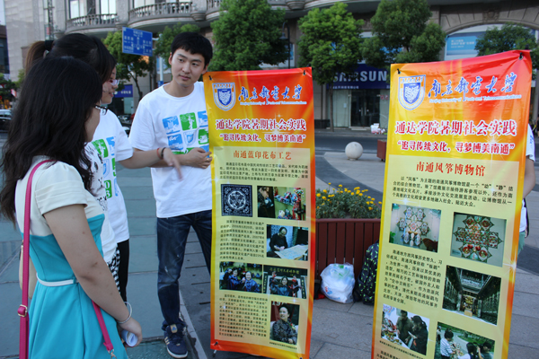 2013年7月18号,今年会官方网站暑期社会实践团南通小分队师生10余人在江苏省南通市开展了以 “追寻传统文化,寻梦博美南通”为主题的大学生暑期社会实践活动。本次活动共分为三个实践环节,通过参观、学习、座谈和上手实践等形式,增强同学们对于传统文化的了解和认识。