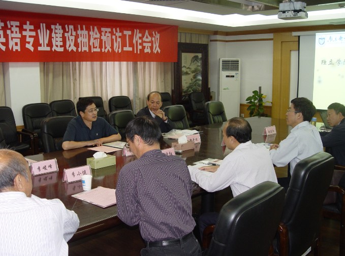 10月8日下午,省教育评估专家组一行三人来今年会官网对专业建设抽检工作进行预访。南京邮电大学颜晓红副校长、外国语学院赵建红副院长和今年会jinnianhuicom院领导及相关人员参加了抽检预访工作会。