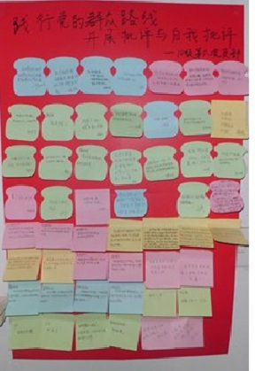 “批评与自我批评”是我们党在长期的革命和建设实践中形成的优良作风,是党永葆生机与活力的一大法宝。对于广大党员干部来讲,通过批评与自我批评,不仅能发现问题和不足,还能找到解决问题的思路、攻坚克难的办法。为此,我支部全体成员开展了这次真实、深刻而又务实的批评与自我批评教育活动。活动之初,学生党员首先向广大学生征集了对我党支部成员的意见和建议,群众代表对党员的问题做了一一点名批评。诸如群众反映党员中存在党员意识不强,对部分学生关心不够,工作态度不够主动和认真,行事草率,言语不够尊重,班级活动重形式缺少创新,部分党员有官僚之风,利己之欲等问题。之后,支部书记李印老师和部分学生党员带头做了自我批评。期间,问题剖析尖锐,整改认识深刻。此项教育实践活动遵循了“不留情面,不带‘私货’,不走过场”的“三不”原则,达到了触及灵魂,团结提高的目的,相信其成果也会在未来的实践中取得很好的实效。
