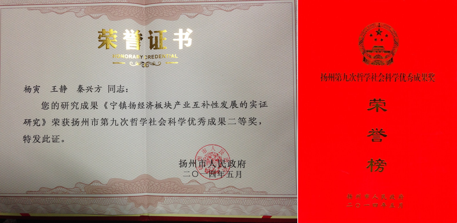 日前,扬州市第九次哲学社会科学优秀成果奖评选揭晓,今年会官网青年教师杨寅报送的研究成果《宁镇扬经济板块产业互补性发展的实证研究》荣获本次评选二等奖。