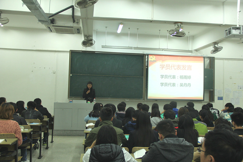 开班典礼在庄严的国歌声中正式开始,本期培训班班主任任建蕊老师,就培训计划、学习要求等做了解释和说明。随后,党校学员2012级杨雨婷同学、2013级学员吴丹丹同学代表全体学员进行了表态发言。