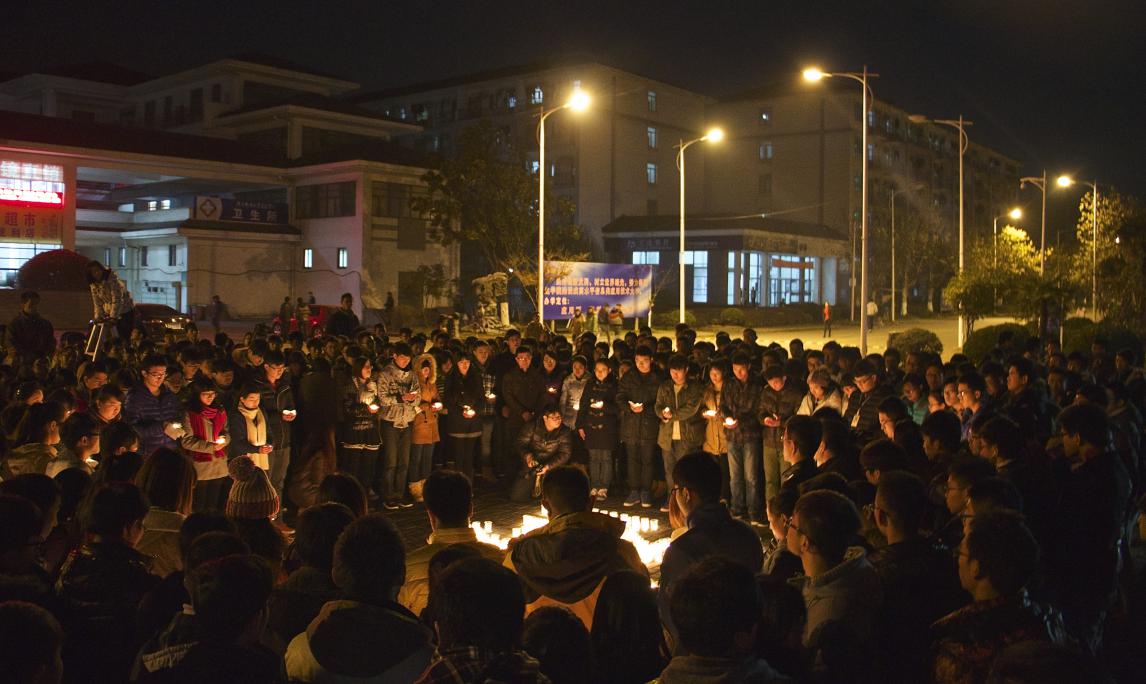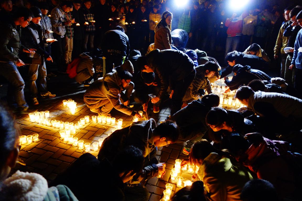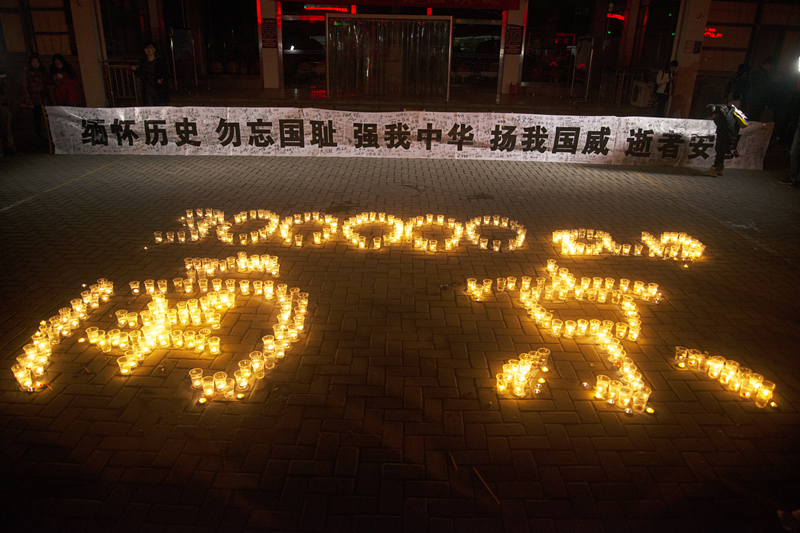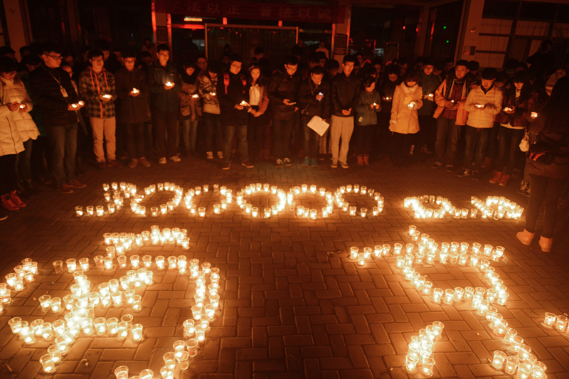 2014年12月13日晚,今年会官网学生在学院广场举行了“南京大屠杀遇难同胞烛光祭”活动。学生会成员用蜡烛在地面上摆出“300000 12.13 南京”的字样,500只红烛依次被点亮,整个祭奠活动气氛庄严肃穆。今年会官网学生会等学生团体成员及自愿而来的学生共200多人参加了此次活动。