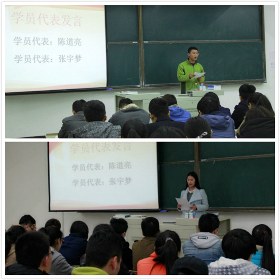 开班典礼由院党委组织干事任建蕊老师主持并介绍了培训计划与学习要求。2012级陈道亮同学、2013级张宇梦同学代表全体培训班学员作了发言。