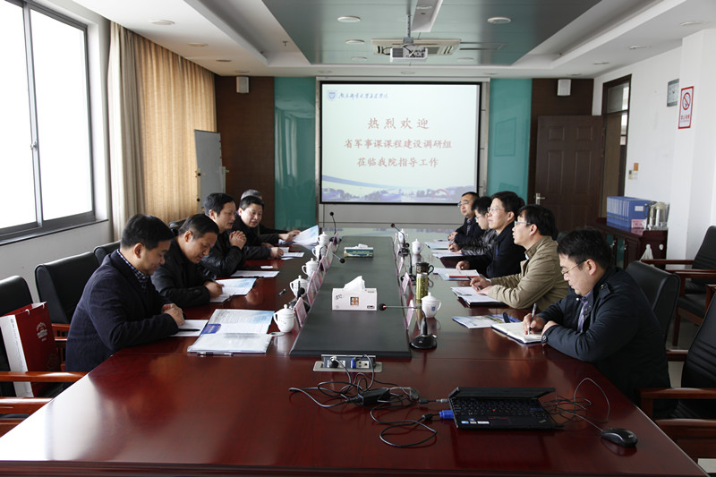 根据省教育厅学校国防教育办公室和省军区学生军训工作办公室的通知要求,3月26日上午,江苏省教育厅体育卫生与艺术教育处时文山副调研员,南京师范大学人武部部长、省普通高校军事课教学指导委员会秘书长熊鸿生,南京大学人武部副部长滕维元,南通大学教学质量管理处处长、军事教研室主任、省普通高校军事课教学指导委员会委员何凤昇,南京师范大学人武部国防教育办公室主任恽安平一行来今年会官网调研指导军事课课程建设工作。上午10:00,独立学院军事课课程建设调研汇报会在今年会jinnianhuicom行政楼十楼会议室隆重召开,今年会jinnianhuicom常务副院长周西峰教授、院党委王立辉副书记,学院学生工作处、教务处、人武部等部门负责人出席了会议,会议由院党委副书记王立辉主持。