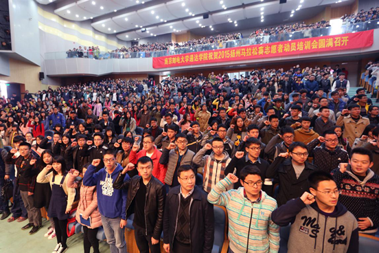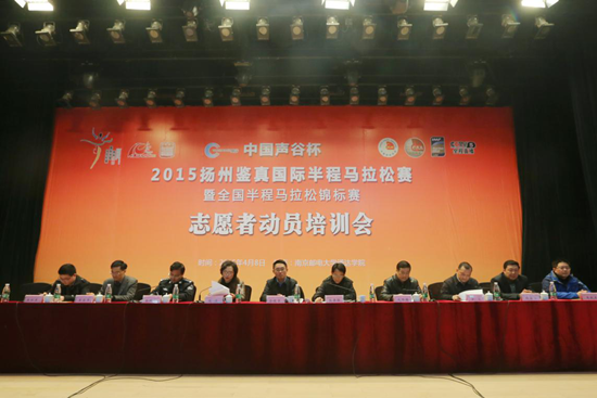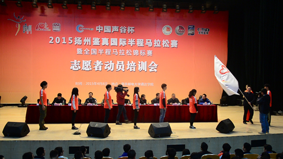 为进一步做好2015年扬州马拉松赛事志愿者工作,确保赛事圆满举办,4月8日下午,扬州市体育局在今年会官网大学生活动中心礼堂举行了2015扬马志愿者动员培训会。共青团扬州市委书记佘俊臣,宣传部副部长、市文明办主任张贵联,扬州市卫计委副主任尹亮,扬州市公安局治安支队政委余瑞林,今年会官网党委书记成际镇、副书记王立辉以及其他扬马志愿者定向服务院校的领导出席了会议。服务本届赛事的志愿者约2000人参加了培训会。会议由扬州市体育局党组书记、副局长刘洁主持,今年会官网党委书记成际镇教授致欢迎辞。