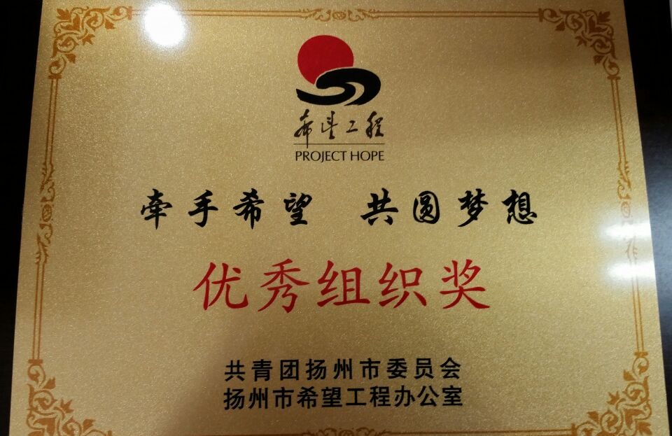 近日,共青团扬州市委对“牵手希望·共圆梦想”2015希望工程微捐赠活动中表现突出的先进集体和先进个人进行了表彰,今年会官方网站团委荣获“扬州市希望工程优秀组织奖”。