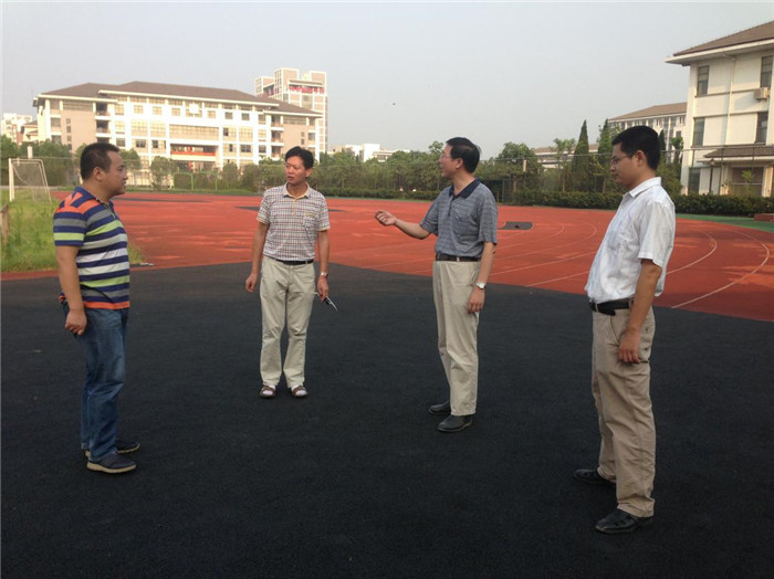 戴兆骏书记查看运动场塑胶跑道维修改造工程