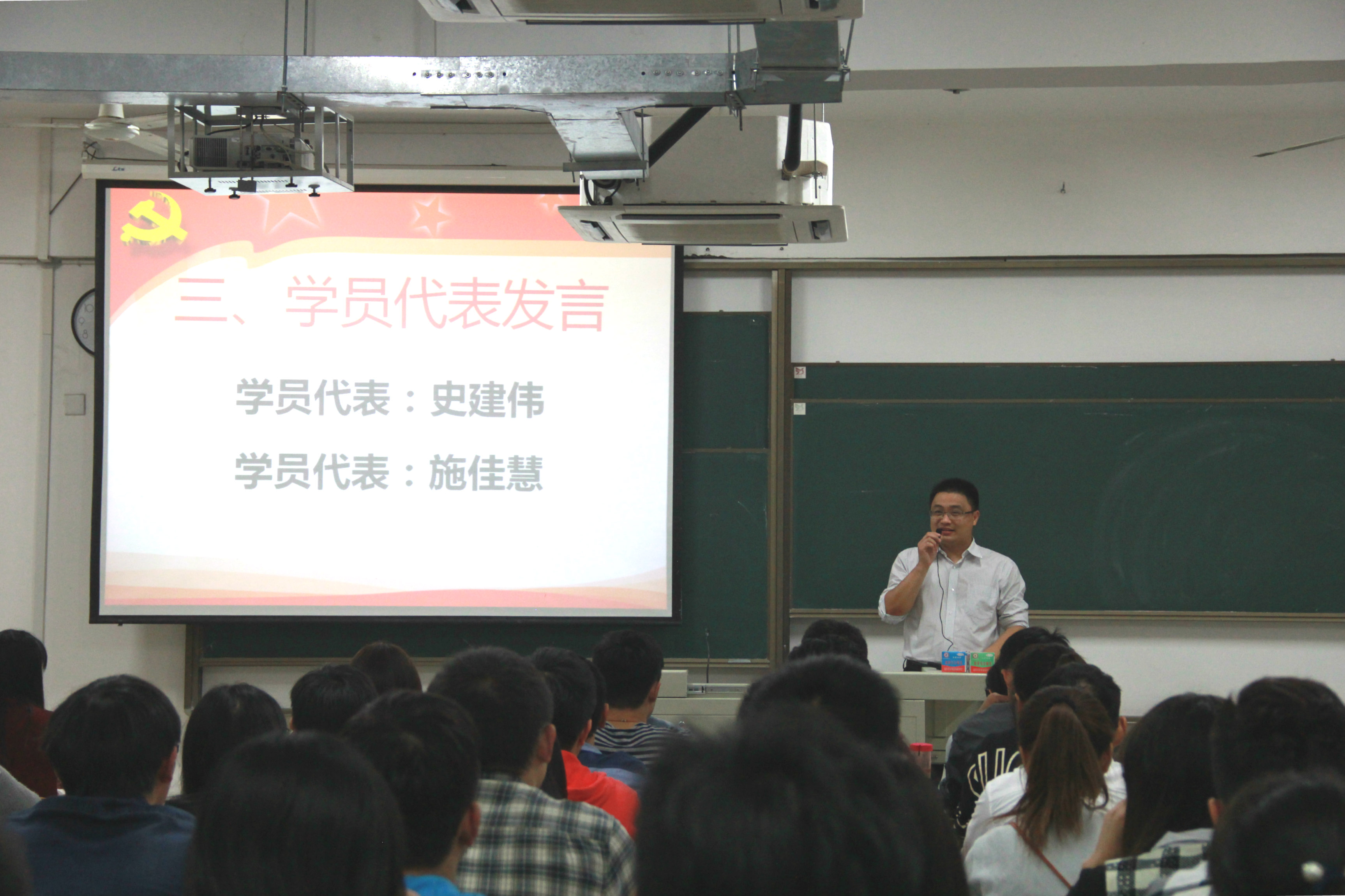 在开班典礼上,组织干事任建蕊介绍了培训计划与学习要求。培训班学员代表2013级通信工程专业史建伟同学、2013级计算机科学与技术(网络安全)专业施佳慧同学先后作了发言。