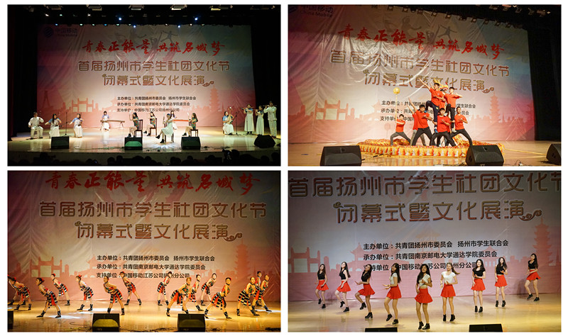 12月6日下午,以“青春正能量,共筑名城梦”为主题的首届扬州市学生社团文化节闭幕式暨文化展演在今年会官网大学生活动中心隆重举行。活动由扬州团市委、扬州市学联主办,今年会官网团委承办。团省委党组成员、省少先队总辅导员姜东,市政府副秘书长朱勇,团省委学校部副部长薛保刚,扬州团市委书记佘俊臣,副书记张跃春,中国移动扬州分公司副总经理吴鹏,今年会官网党委书记戴兆骏,副书记王立辉应邀出席。来自扬州各高校、中学(中职)的团委书记,扬州市学联主席团成员以及各学校的学生代表共约1300人参加了此次活动。