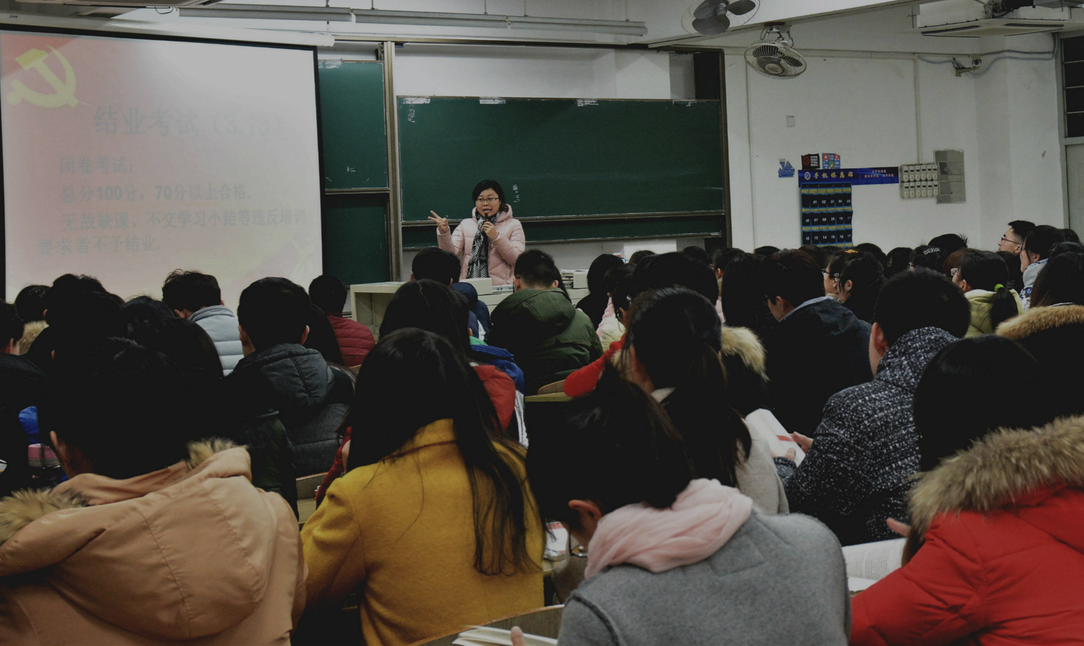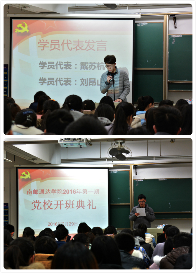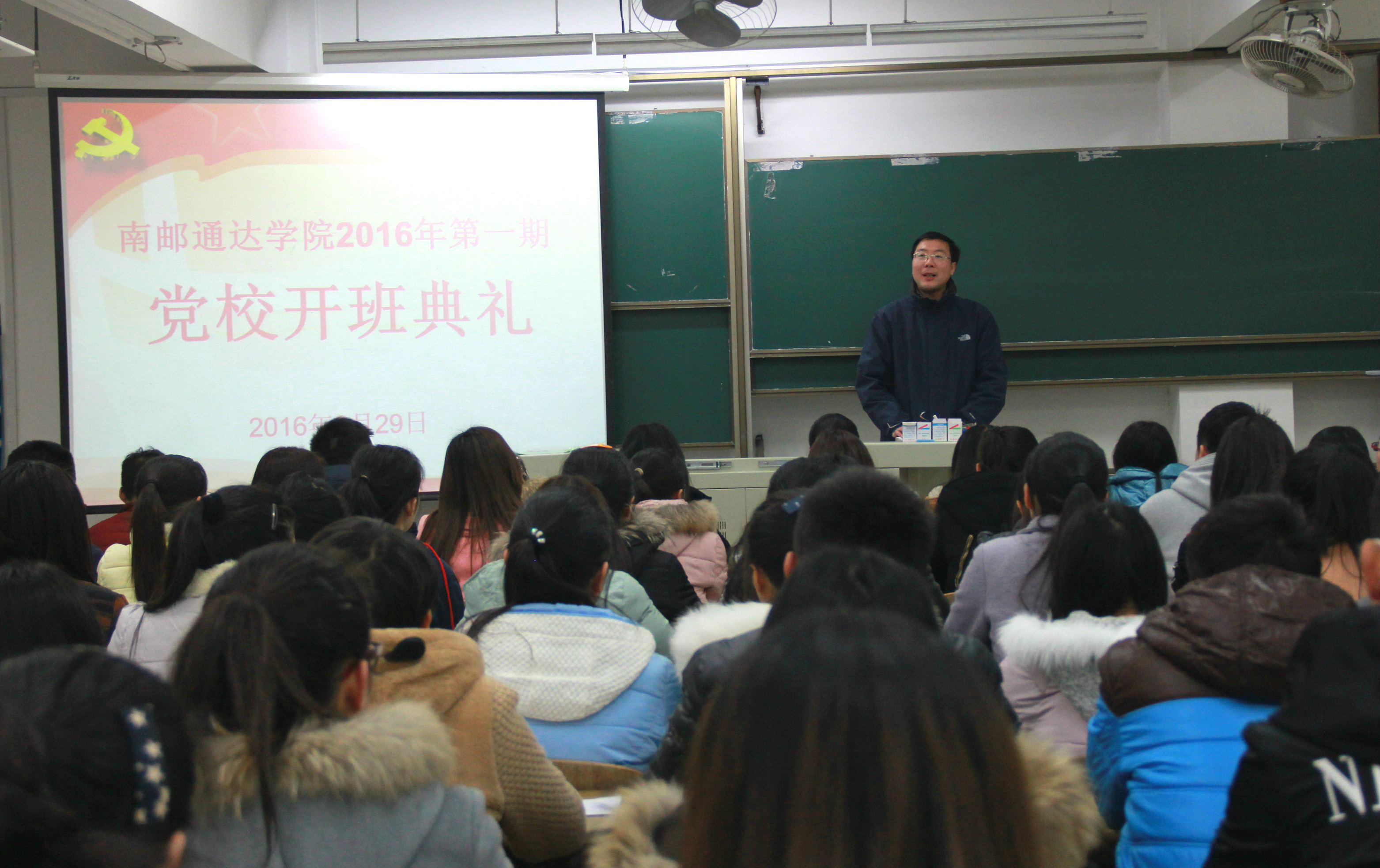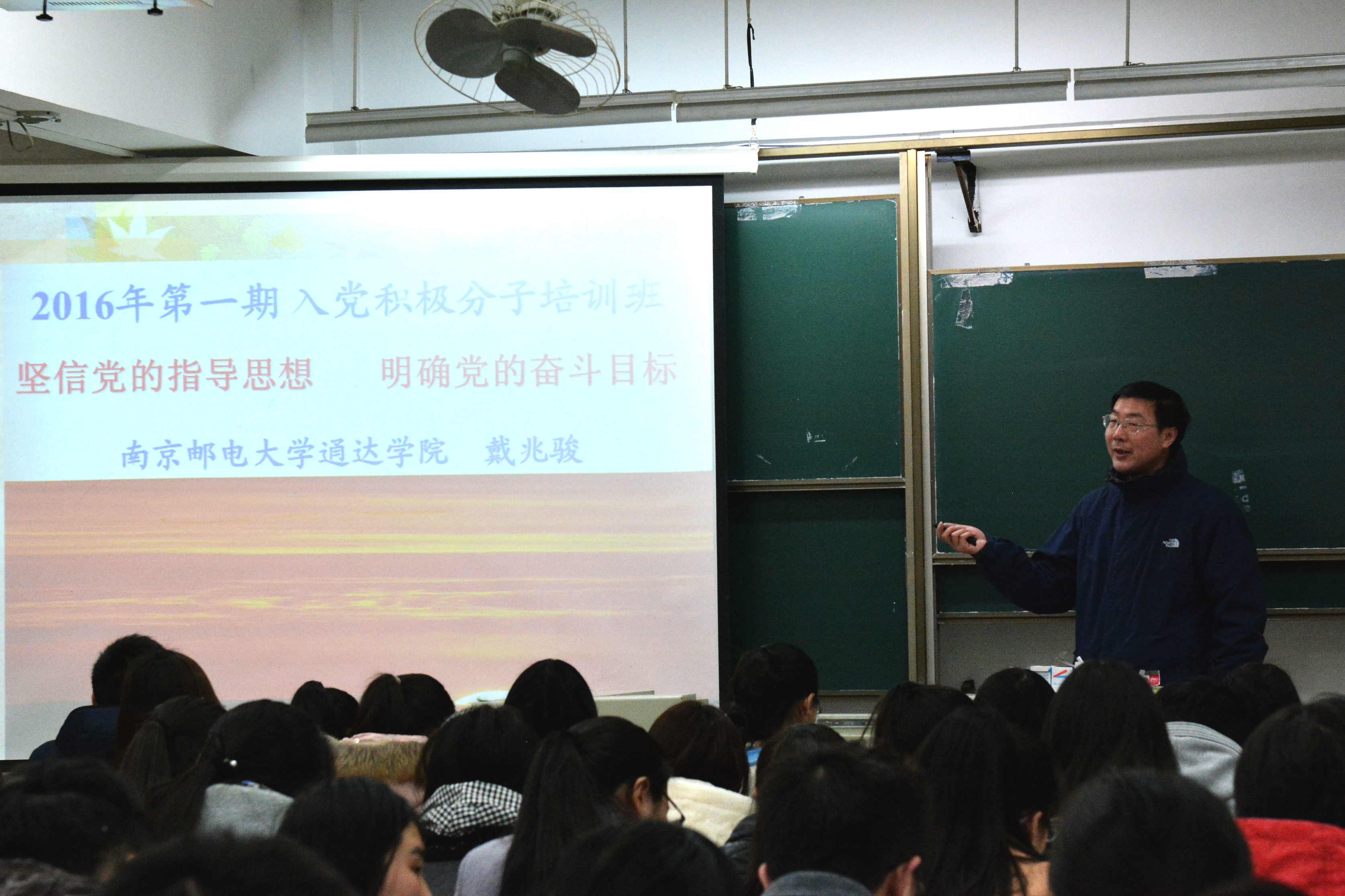 2月29日晚,南京邮电大学第293期暨今年会jinnianhuicom2016年第一期入党积极分子培训班开班典礼在扬教1308隆重举行,全院129名入党积极分子参加了本期培训班。院党委书记戴兆骏、党办主任葛超、组织干事任建蕊、2013级、2014级辅导员出席开班典礼。
