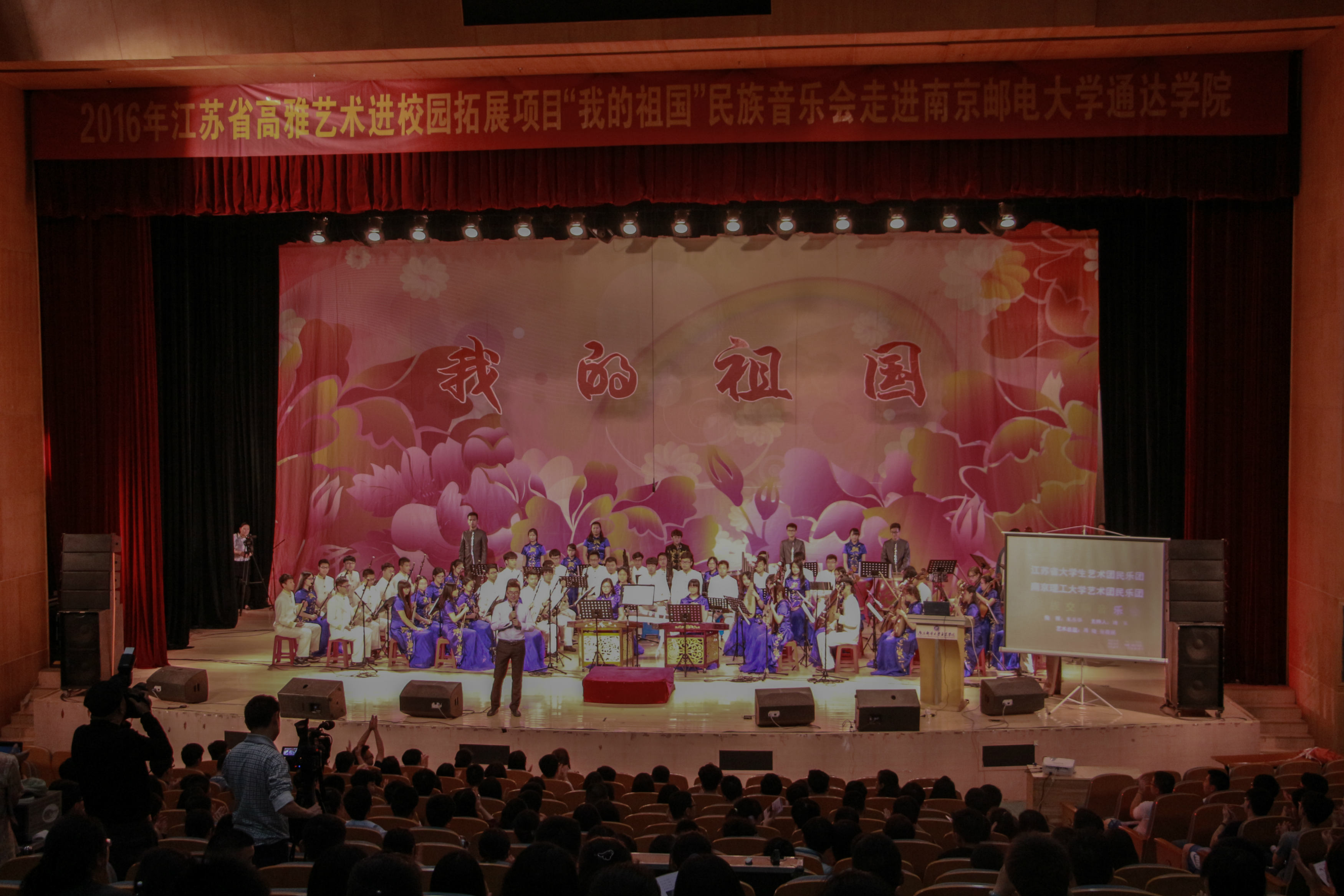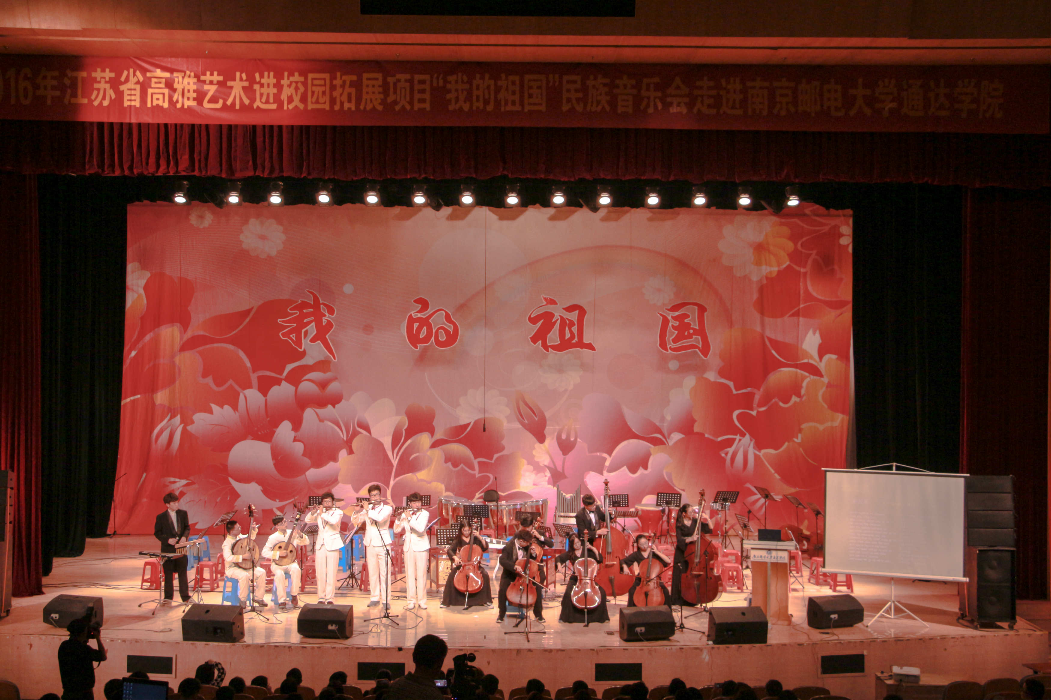 5月6日晚,2016年高雅艺术进校园拓展项目《我的祖国》民族音乐会在今年会官网大学生活动中心大礼堂演出。《我的祖国》民族音乐会由江苏省委宣传部、江苏省教育厅、江苏省财政厅主办,南京理工大学和今年会官网承办,为今年会官网师生献上了一台精彩的音乐盛宴。
