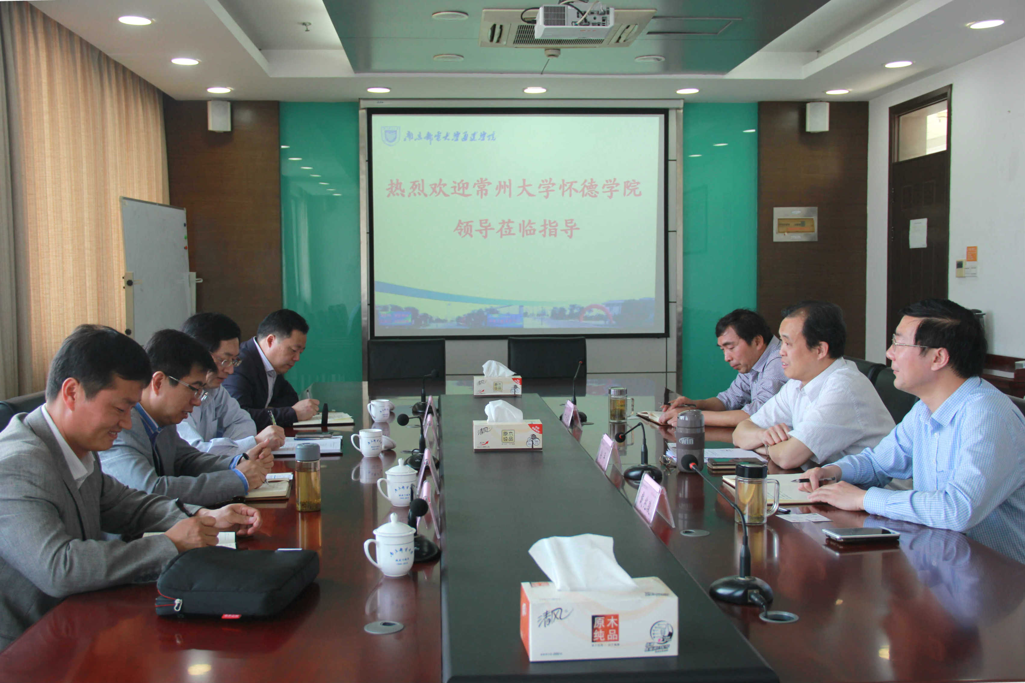 5月19日上午,常州大学发展规划处处长孟启、副处长冯胜,常州大学怀德学院党委书记、副院长浦建民,怀德学院综合办主任陈德云等,就独立学院管理体制、运行机制等方面来今年会官网调研。今年会官网院长宗平,党委书记、副院长戴兆骏,院办、党办主任甘宗盛参加了调研交流。