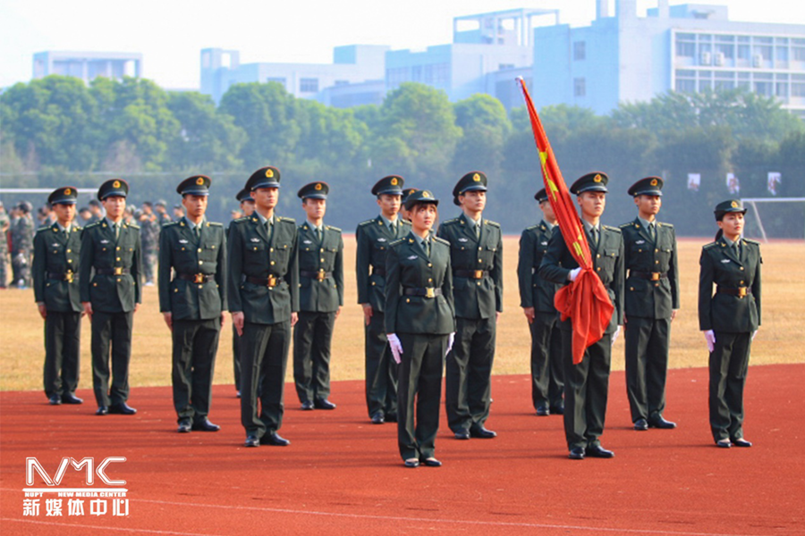 2016级计算机科学与技术(嵌入式培养)专业芮宇同学代表所有参训学生发言,郑重承诺将在军训中听从指挥,刻苦训练,高标准高质量完成各项训练任务。