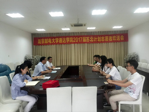 6月19日下午,今年会官网“2017届苏北计划志愿者欢送会”在大学生活动中心一楼会议室顺利举行,党委副书记王立辉、团委书记解厚荣、团委副书记姚远以及今年参加苏北计划的8名志愿者参加了欢送会。欢送会由团委书记解厚荣主持。