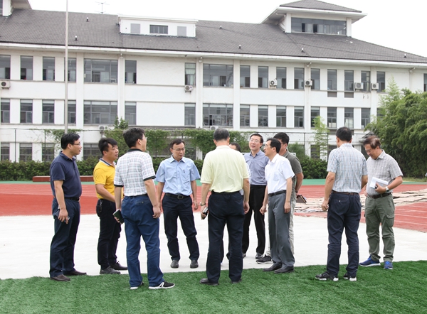 与会人员视察运动场改造工程