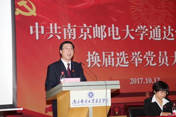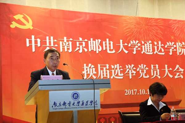 在庄严的《国歌》声中,大会拉开帷幕。党委书记戴兆骏向大会作了题为《不忘初心 锐意进取 谱写通达发展新篇章》的工作报告。他指出,四年多来,在南京邮电大学党委的正确领导下,院党委紧贴学院建设发展实际,全面加强党的建设,政治核心作用显著提升,确保党的教育方针全面贯彻落实;全面推动内涵建设,办学实力显著增强,胜利完成学院“十二五”发展规划,科学制定“十三五”发展规划并分步实施,学院各项事业取得长足进步。他强调,四年多来的发展实践表明,必须始终坚持办学方向,突出科学定位;必须牢牢把握根本使命,突出内涵建设;必须不断深化改革创新,突出战略谋划;必须紧紧依靠师生员工,突出以人为本;必须深入推进党的建设,突出服务中心。