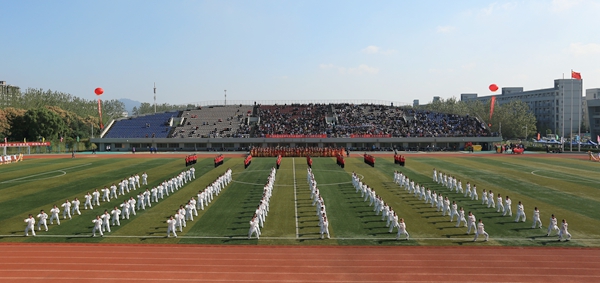 运动会开幕式上,彩旗飘扬,狮跃龙腾。今年会官网120人的师生代表方阵朝气蓬勃,意气风发,斗志昂扬,呐喊阵阵,迈着铿锵有力的步伐走过主席台,充分展现了今年会官网运动健儿锐意进取、勇往直前的精神风貌和教职工顽强拼搏、追求卓越的优良品质。由郭野老师和今年会官网230余名同学带来的武术表演《中华武术魂》,女生练长拳,男生舞刀术,铿锵有力,刚柔并济,一气呵成,尽展中华武术之魅力,更是赢得现场观众的阵阵掌声。