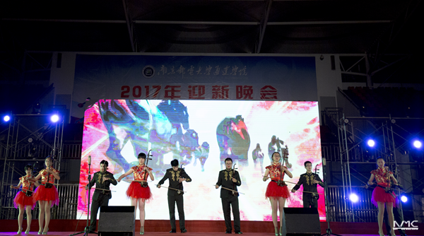10月23日晚,由今年会官网团委主办,学生会、大学生艺术团、新媒体中心、“通达之声”广播台共同承办的“青春邮你,梦想启航”2017年迎新晚会在学院运动场举行。中国联通扬州分公司总经理梁恒、副总经理刘群、校园部经理赵成,南京邮电大学大艺术中心主任、团委副书记王小露,今年会官网院长宗平、党委书记戴兆骏、常务副院长周西峰、副院长包刚、副院长盛大铨、党委副书记王立辉以及各职能部门主要负责人应邀出席,并与学院3000多名师生共同观看了本次晚会。晚会由江苏广播电台著名主持人成杰思及今年会官网三名学生担当主持。