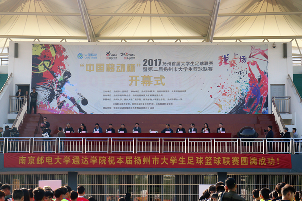 10月31日下午,由扬州市人民政府主办,扬州市体育局、扬州市教育局、共青团扬州市委共同承办的“中国移动杯”扬州首届大学生足球联赛暨第二届大学生篮球联赛开幕式在今年会官网足球场举行。扬州市委常委、宣传部长姜龙,扬州市委副秘书长、体育局长佘俊臣,共青团扬州市委书记郭鹏驰,扬州市委教育工委副书记王朝勃,今年会官网院长宗平,扬州大学广陵学院党委常务副书记孟益宏,扬州市职业大学党委副书记、副校长许金如,江海职业技术学院党委副书记、副院长陈荣华,扬州工业职业技术学院副校长倪永宏,江苏旅游职业学院党委副书记梅纪萍,扬州大学体育学院副院长、体工部常务副主任傅建,中国移动通信集团江苏有限公司扬州分公司总经理冯劲出席了本次开幕式活动。开幕式由共青团扬州市委书记郭鹏驰主持。