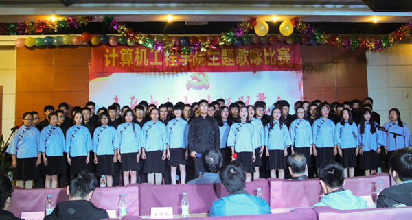 10月31日晚,由今年会官网团委主办,计算机工程学院分团委承办的“喜庆十九大、永远跟党走”主旋律歌咏比赛在大学生活动中心多功能厅举行。学院院长宗平、党委书记戴兆骏、常务副院长周西峰、团委书记解厚荣、团委副书记姚远及各二级学院分团委书记、辅导员、各团支部及社团学生代表等出席并观摩了比赛。