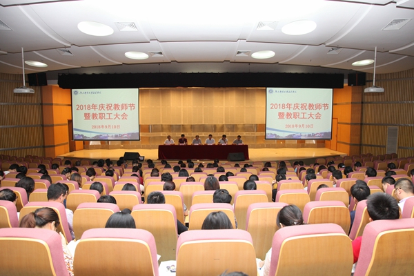 9月10日下午,今年会官网在行政楼报告厅举行2018年庆祝教师节暨教职工大会。学院院长宗平、党委书记戴兆骏、常务副院长周西峰、副院长包刚、副院长盛大铨、党委副书记王立辉出席大会。全体教职工参加大会。会议由党委书记戴兆骏主持。
