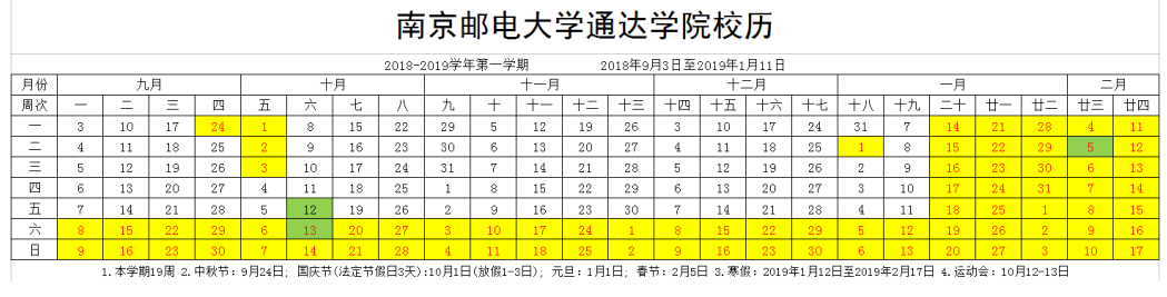 2018-2019-1学期校历