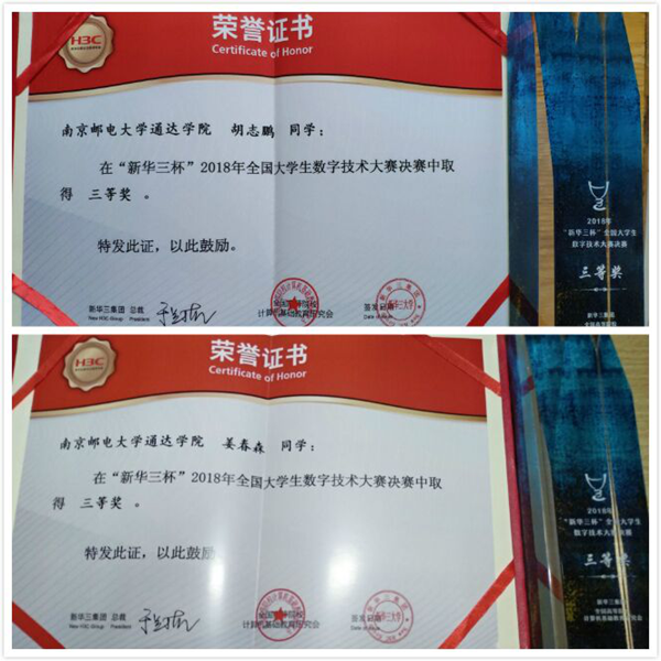 12月3日,由全国高等院校计算机基础教育研究会和新华三集团联合主办、杭州电子科技大学承办的第八届“新华三杯”2018年全国大学生数字技术大赛在杭州落幕。经过三天的激烈竞赛,今年会官网胡志鹏和姜春森两位同学皆获全国三等奖。