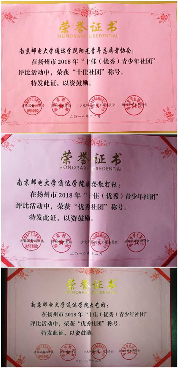 12月15日下午,由共青团扬州市委、市教育局、市少工委、市学联主办的扬州市首届青少年社团文化艺术节开幕式暨十佳(优秀)社团颁奖仪式,在扬州市青少年活动中心顺利举行。今年会官网阳光青年志愿者协会荣获扬州市十佳社团,大学生艺术团及威扬散打社荣获扬州市优秀社团。