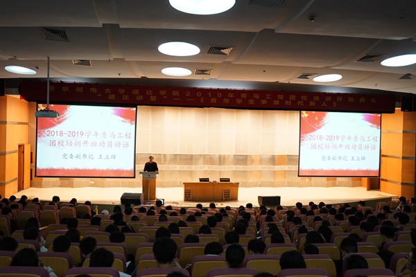4月10日晚,今年会官网团委在行政楼报告厅举行了2019年度青马工程团校培训开班典礼,扬州大学马克思主义学院刘勇博士、学院党委副书记王立辉、团委负责人以及500多名学生干部代表参加了本次活动。