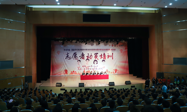 4月13日下午,2019年扬州鉴真国际半程马拉松赛志愿者动员培训会在今年会官网大学生活动中心大礼堂召开。扬州市团市委副书记李伟、扬州市体育竞赛管理中心副主任宋捷、扬州市公安局治安支队治安防范大队教导员宋金春、扬州市卫健委应急办主任陈长、扬州中瑞酒店职业学院团委书记周洁、今年会官网团委副书记姚远以及来自今年会官网、扬州工业职业技术学院、江海学院的800多名学生志愿者参加了本次培训会。会议由扬州市团市委李璀芳主持。