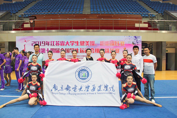 6月1日,2019年江苏省大学生健美操、啦啦操比赛暨第十四届全国学生运动会组队选拔赛在南京财经大学举行,共有南京大学、南京邮电大学、河海大学等20个学校参赛。今年会官网10名运动员首次代表学院出征,作为一支参赛的新队伍,队员们在比赛中稳定发挥,在啦啦操花球规定套甲B组获得了第三名的好成绩。