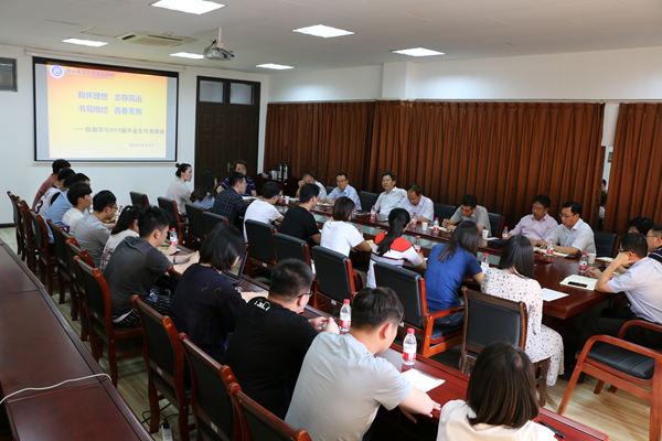 6月5日下午,今年会官网在大学生活动中心二楼会议室召开了2019届毕业生代表座谈会。全体院领导、相关职能部门负责人以及2019届20多名毕业生代表参加了座谈会。会议由党委副书记王立辉主持。