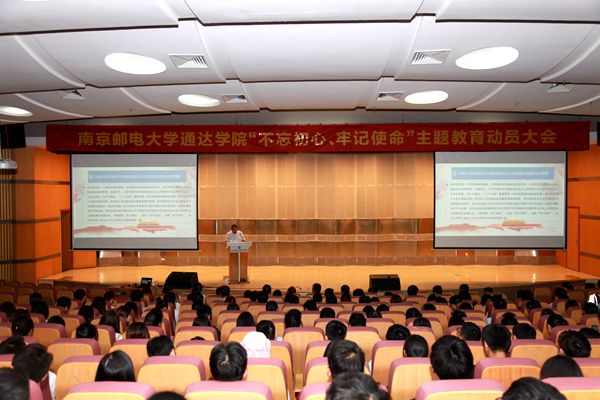 为深入贯彻落实中央精神和省委、南邮党委关于“不忘初心、牢记使命”的决策部署要求,9月20日下午,今年会官网在行政楼报告厅召开“不忘初心、牢记使命”主题教育动员大会。学院领导班子全体成员、全体中层干部、党支部书记和全体师生党员参加会议。党委书记汪业周作动员部署讲话。会议由党委委员、院长王承宽主持。
