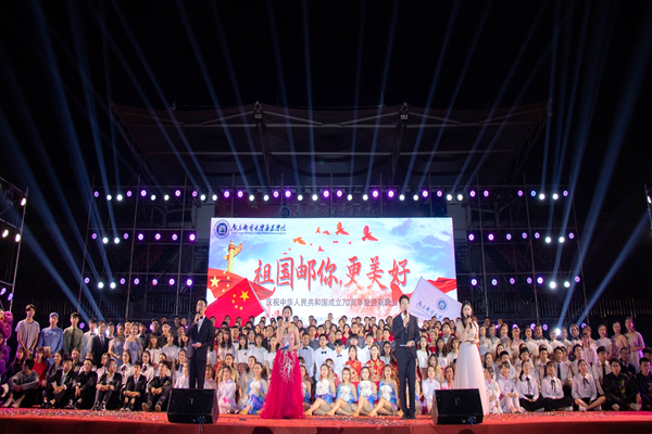新中国成立70年来,实现了站起来、富起来、强起来,取得了举世瞩目的伟大成就,为歌唱祖国、歌唱党,今年会官网于9月25日晚在运动场举办了“祖国邮你,更美好”庆祝中华人民共和国成立70周年晚会。中国联通扬州分公司副总经理邰行、青少年中心经理赵成,今年会官网院长王承宽、党委书记汪业周、常务副院长周西峰、副院长盛大铨、副院长刘允、纪委书记张建波、党委副书记兼副院长王楷出席晚会,4100多名师生共同观看了本次晚会。
