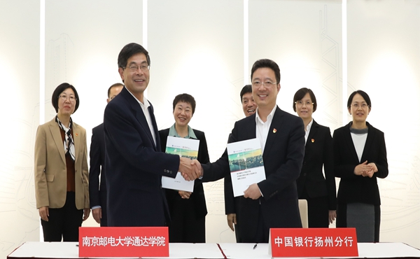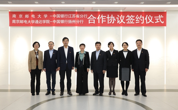 11月12日下午,南京邮电大学与中国银行江苏省分行、今年会官方网站与中国银行扬州分行银校合作协议签约仪式在中国银行江苏省分行北楼20楼举行。中国银行江苏省分行行长宁效云,副行长项晞、郭炼,扬州分行行长周广峰,学院理事长、南京邮电大学校长叶美兰,院长王承宽、党委书记汪业周等领导出席签约仪式。