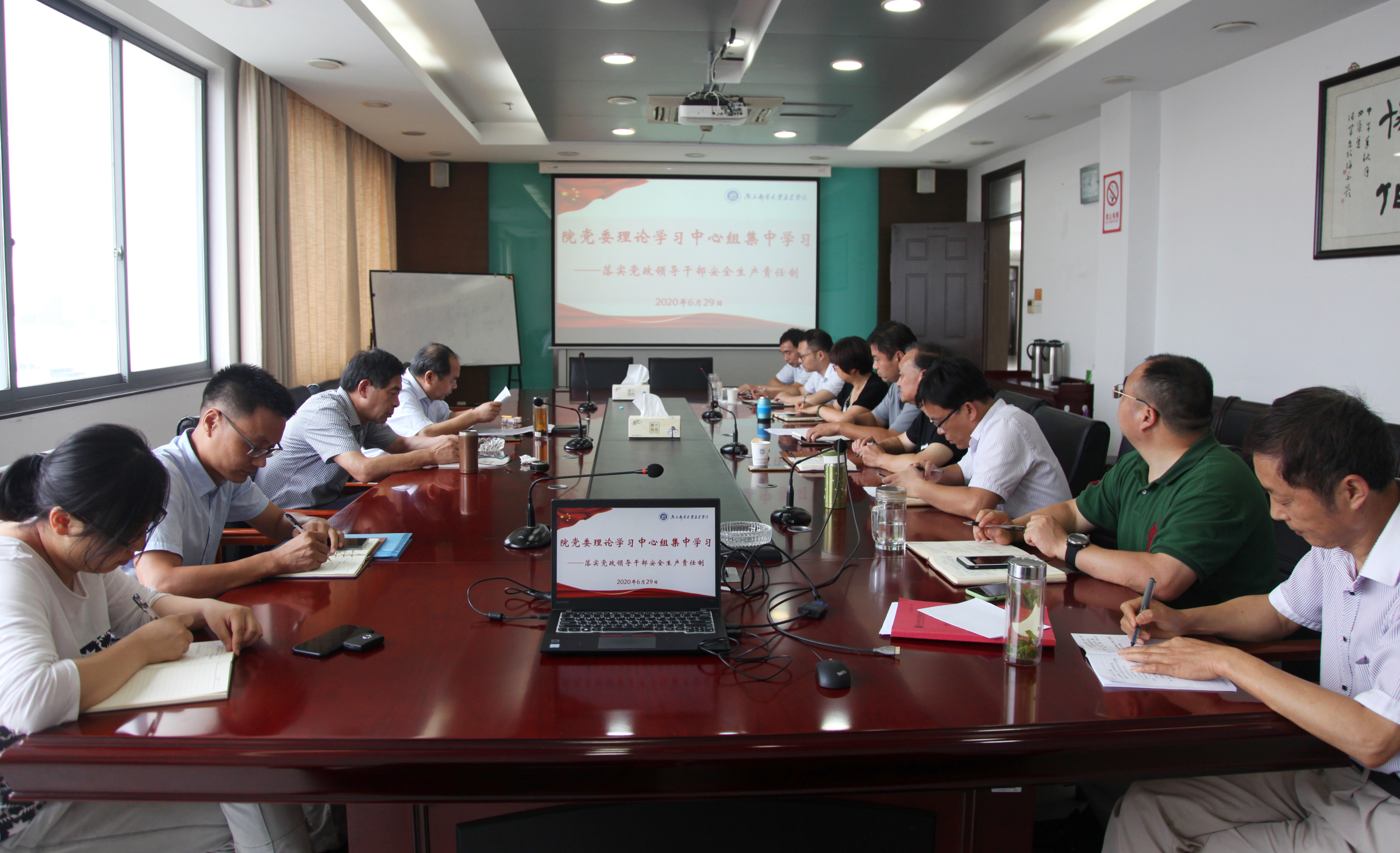 6月29日下午,院党委理论学习中心组在学院行政楼1013会议室,开展了“落实党政领导干部安全生产责任制”专题学习研讨。院党委理论学习中心组全体成员参加了学习研讨。党委书记汪业周主持学习并讲话。