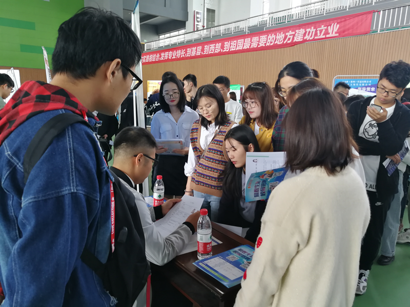 继日前中国电信等企业的校园专场招聘宣讲会火爆场面之后,今番招聘会现场更是熙熙攘攘、人头攒动。HR积极向学生宣传公司文化、岗位需求、福利待遇等,吸引学生踊跃报名;毕业生与企业代表广泛咨询、深度交流,络绎不绝。部分学生与用人单位当场达成意向。有13家学生报名人数多的企业,又专门申请了下午召开专场宣讲、笔试、面试,进行深度选拔。