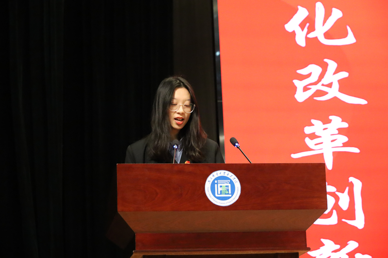大会在雄壮的国歌声中开幕。扬州大学广陵学院学生会执行主席吴东澳宣读了贺信。南京邮电大学学生会执行主席石黄闻清同学代表南邮学生会向大会致辞。