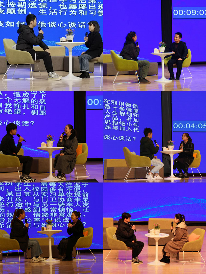 此次大赛分为初赛和决赛,包括基础知识测试、案例分析和谈心谈话三个环节。比赛规则主动适应今年国赛最新要求,贴近辅导员工作实际,展现辅导员核心能力。经过第一阶段的初赛选拨,12名辅导员脱颖而出进入决赛环节。决赛环节设置“谈心谈话”一个项目,12名学生担任助演。谈心谈话过程中,“因疫情影响遭遇心理异常”“家庭变故又遇上学习危机”“性格执拗遭遇人际关系困惑”“面试失败导致心理失衡”,面对助演同学多样化的困难与迷茫,参赛辅导员积极应对,或思想引导、或客观分析、或严厉劝诫,帮助他们剖析问题本质,给出合理化建议,在精彩交谈中演绎了一场师生心灵的思想碰撞。