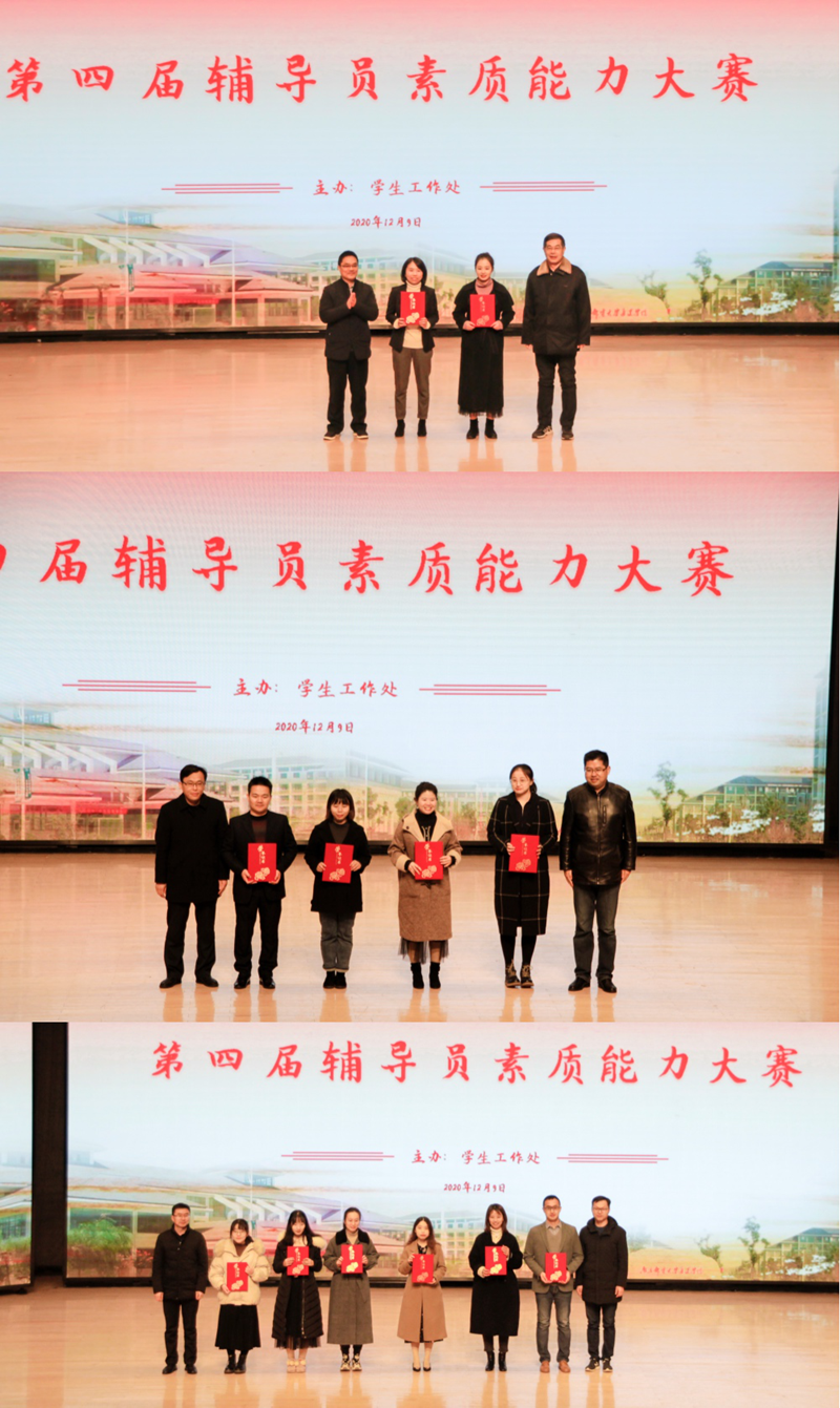12月9日,由学生工作处举办的第四届辅导员素质能力大赛决赛在大学生活动中心礼堂圆满落幕。本次大赛决赛评委由校外和校内7名专家组成。校外专家邀请了扬州大学党群党总支书记、学生工作处副处长居学明,南京邮电大学通信与信息工程学院副书记葛敏、光电子与光学工程学院副书记高翔担任,校内专家由院长王承宽,纪委书记张建波,党委副书记、副院长王楷,学生工作处处长解厚荣担任。部分职能部门负责人、全体辅导员、各班班长和团支书共计约700人现场观摩了本次决赛。