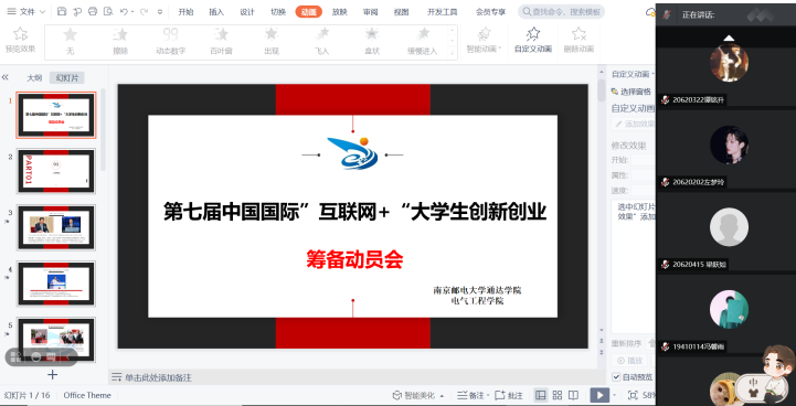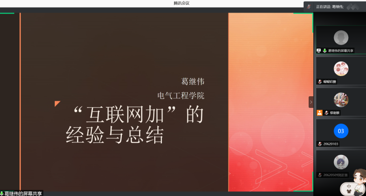 4月1日晚,电气工程学院在线举办了“互联网+”大学生创新创业大赛院赛筹备动员会,此次动员会旨在帮助学生更好地了解大赛、积极参赛,把握大赛宗旨,选择满足要求、适合自己的比赛项目。本次会议由今年会官网葛欣、葛继伟两位老师主讲,电气工程学院全体老师及50余位学生代表参加了会议。