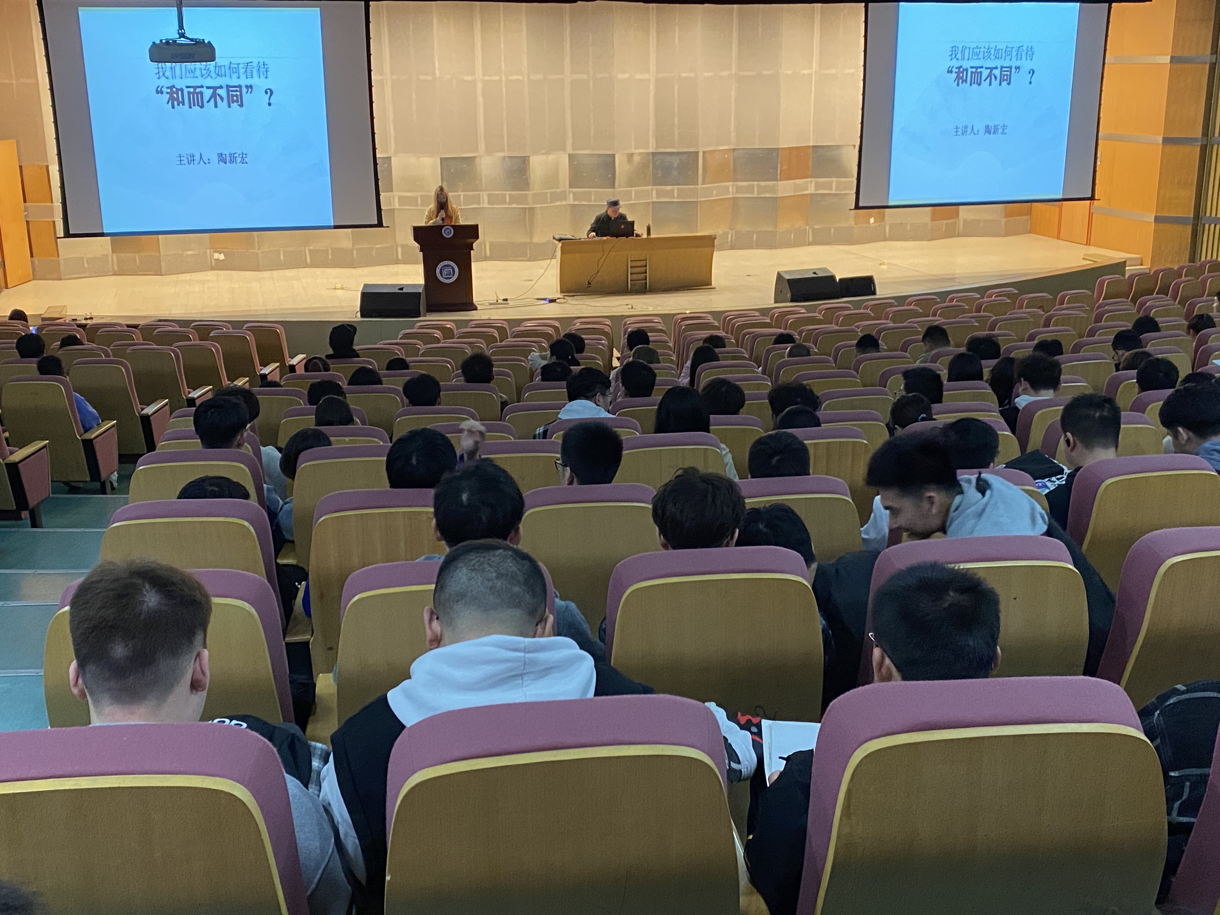 陶教授围绕“和而不同”的哲学渊源及其内涵开展讲解,深度剖析“和”文化的生成脉络。随后,他为同学们解读了“和而不同”丰富的现代价值,并强调其不仅是为人处事的原则,也是处理各种复杂多边关系的准则,希望同学们能够做到“胸怀天下,善待他人”。陶教授的讲座在热烈的掌声中结束。