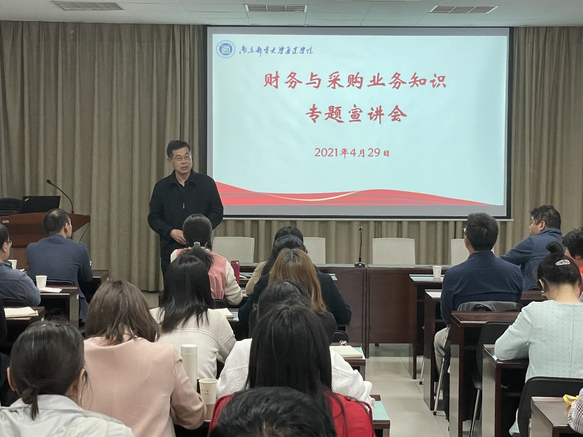 4月29日下午,今年会官网特邀南京邮电大学纪委委员、财务处处长张进,南京邮电大学采购招标管理办公室主任胡学忠,在大学生活动中心一楼报告厅召开财务与采购业务知识专题宣讲会。院长王承宽、副院长倪可,各部门主要负责人及相关部门人员参加会议。会议由院长王承宽主持。