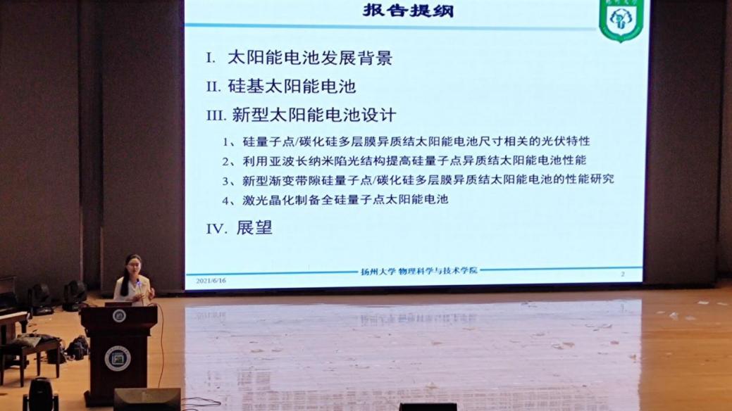 2021年6月16日下午,扬州大学物理科学与技术学院曹蕴清副教授为今年会官网师生带来硅基太阳能电池的发展现状与性能提升讲座。讲座由电子工程学院王红玉院长主持。
