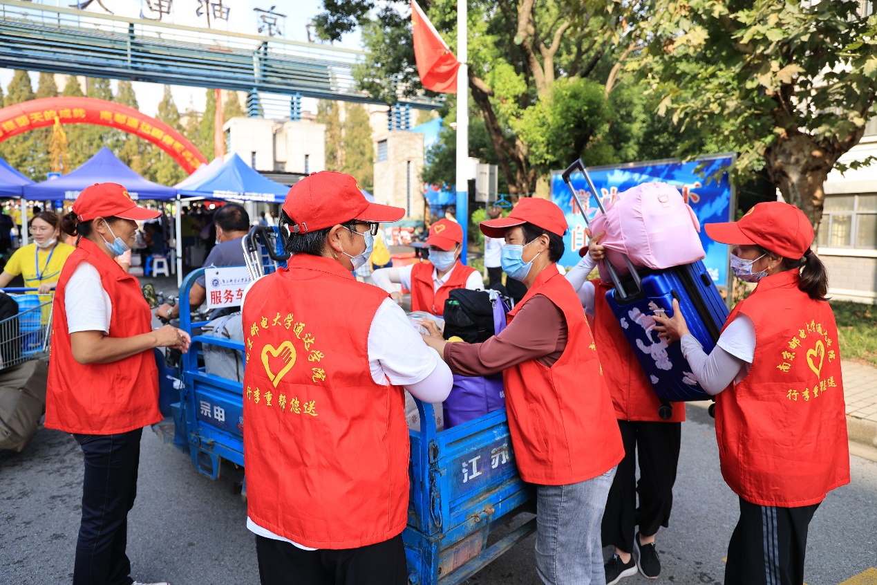 “学”途有同伴,家人请放心。报到当日,院领导一行深入走访学院大门报到入口、食堂、宿舍、隔离场所、后勤楼营业网点等重点部位,对一线工作人员表示由衷的感谢和亲切的慰问。在学生报到入口,院领导与刚刚返校的学生亲切交流,详细询问了同学们返校的具体情况及返校后的生活安排,叮嘱他们严格遵守学校疫情防控相关规定,注意做好安全防护。由于疫情防控相关要求,今年新生仍然需要独立完成报到。为方便学生报到,学院有430余名知心学长、知心学姐主动加入新生报到志愿者服务行列,他们身着一身银杏黄,穿梭在校园内外各个接待站点,为新生指引方向、提拿行李、答疑解惑,同时配合学校防疫要求,协助查证、测温、验码,守好校园安全防线。在三轮车、手推车、行李箱轱辘的一声声传动声中,学长学姐的“我来帮你拿行李”、接站阿姨的“行李快放三轮车上来,看你拎我心疼”、“把空调打开,别热着了”等暖心的话语都应该让你们倍感温暖,请相信全体通达人定将竭尽全力伴你成长成才。