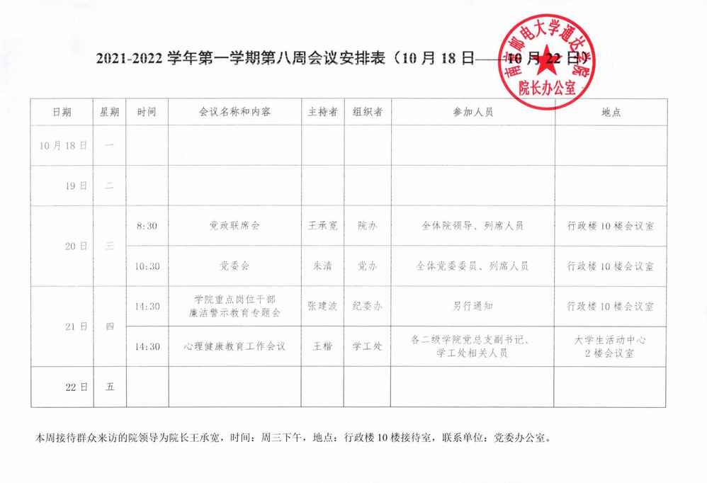 2021-2022学年第一学期第八周会议安排表