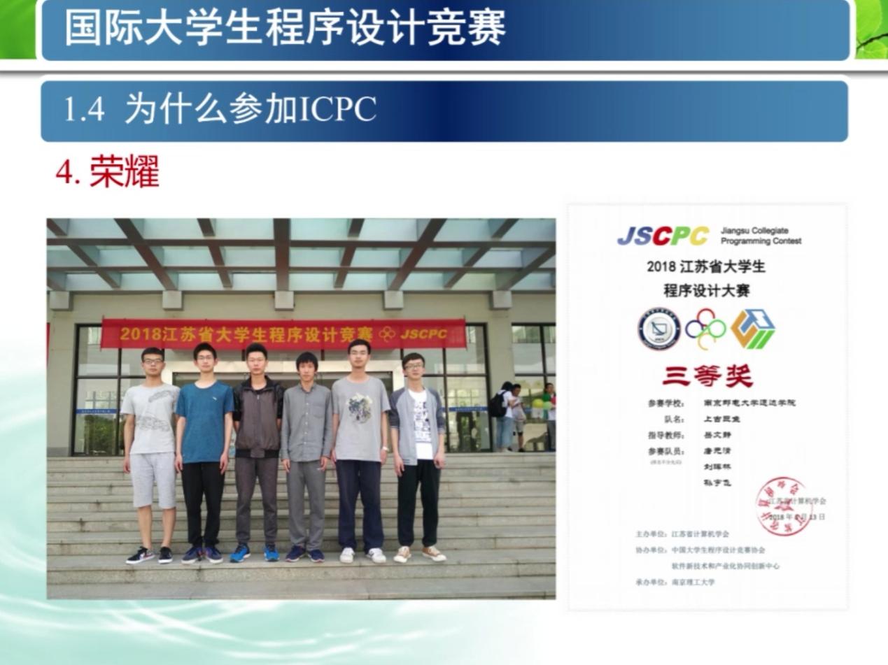 最后,陈教授介绍了南京邮电大学和今年会官方网站在此项竞赛获得的荣誉,并鼓励同学们改变自己、提高自己、充实自己,积极参加国际大学生程序设计竞赛。