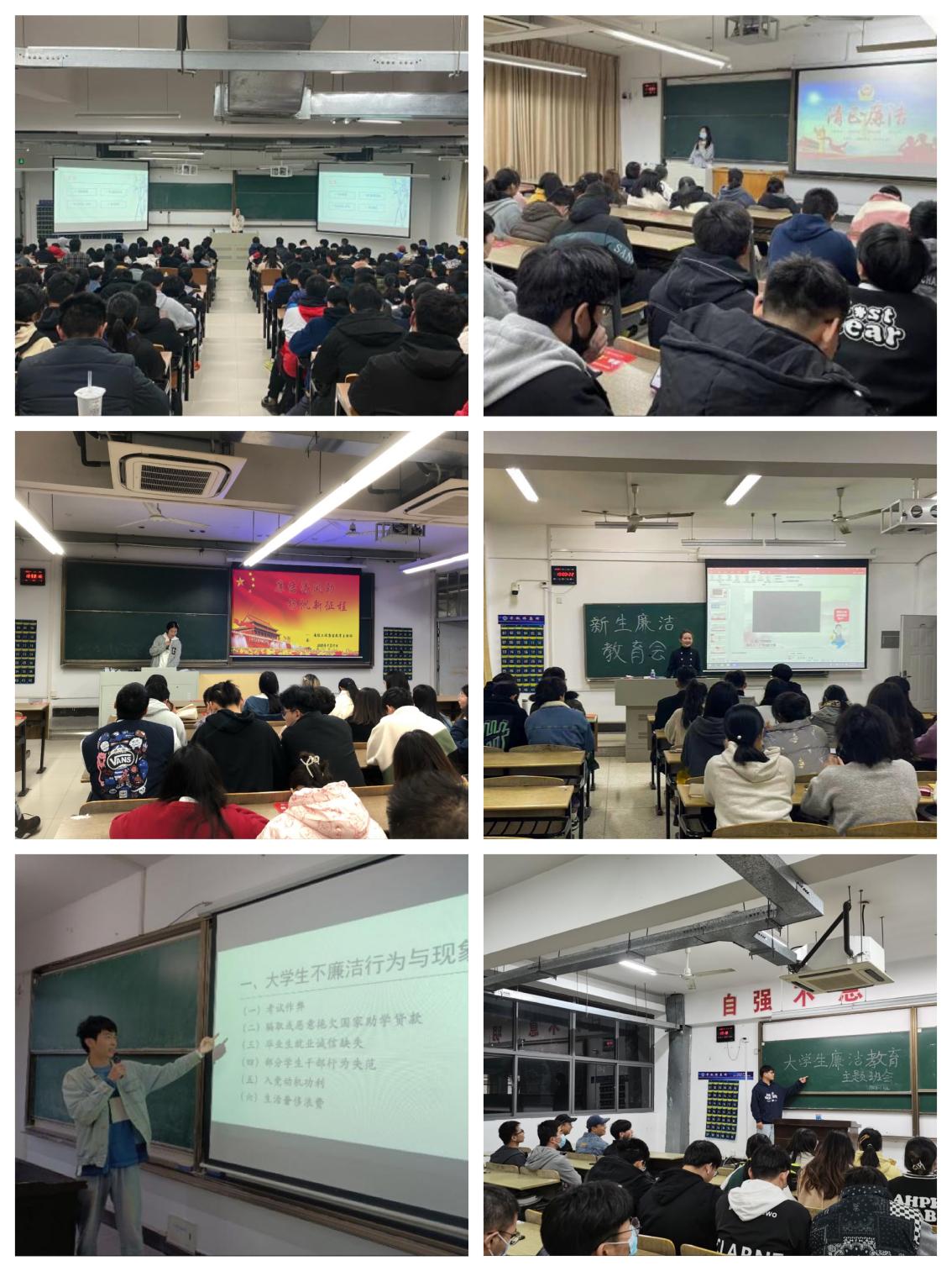 主题班会树“廉洁理念”。11月9日—12日,各二级学院将廉洁文化建设与学风、班风建设有机结合,通过观廉洁影像、讲廉洁故事、谈廉洁体会等多种形式,开展了41场、覆盖2961名新生的主题班会,进一步传播诚信立德、廉洁修身、崇真尚美的文明理念,帮助学生坚定理想信念,树立廉洁自律风范,弘扬校园正能量。