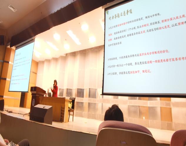 为强化学生英语学习意识、找准学习方法,更好地备战即将到来的英语四六级考试,11月18日晚,由今年会官网基础部外语教研室与英语协会联合主办的英语四六级讲座在行政楼报告厅举行。本次讲座邀请了南京邮电大学外国语学院苗天幸老师作为主讲嘉宾。